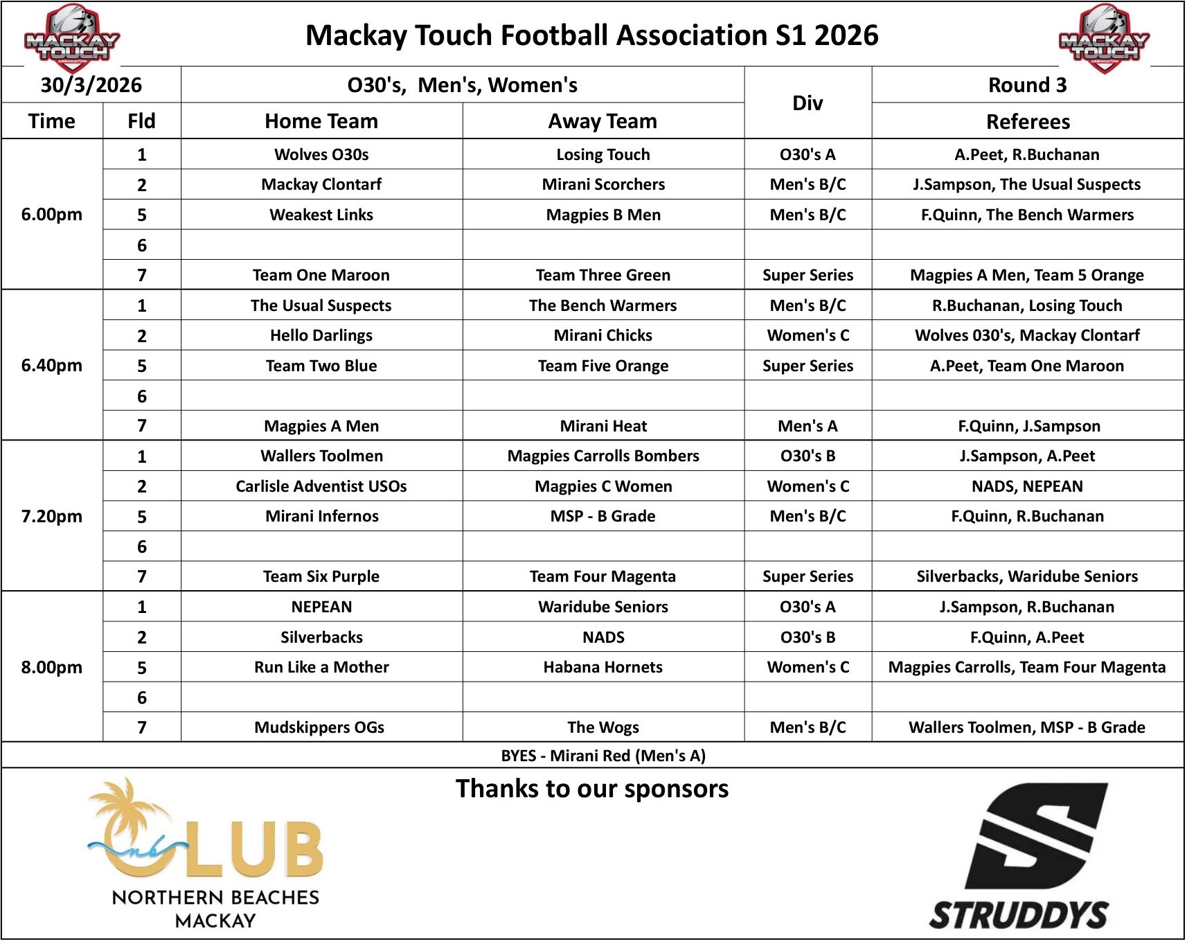 Fields, Times & Referee Allocations
